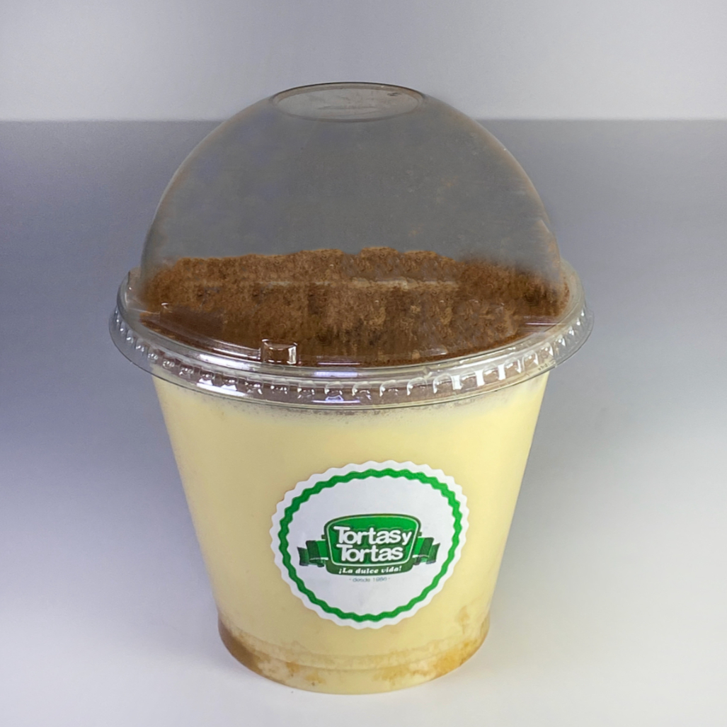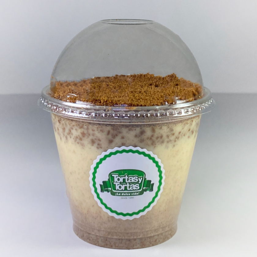 Elaborado en capas de bizcochuelo, queso crema, crema de café y licor.