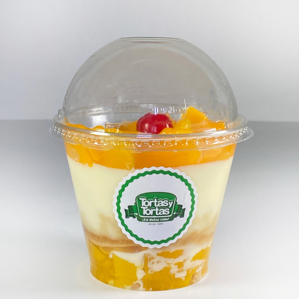 Elaborado con crema de leche, leche condensada y trozos de melocotón.