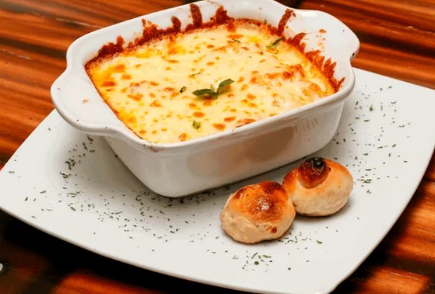 Lasaña a tu gusto, con las siguientes opciones: Carne en Salsa Boloñesa, Pollo o Pollo con Champiñones; con Salsa Napolitana de Tomate Orgánico San Marsano y Queso. Acompañada de 2 panes de Ajo
