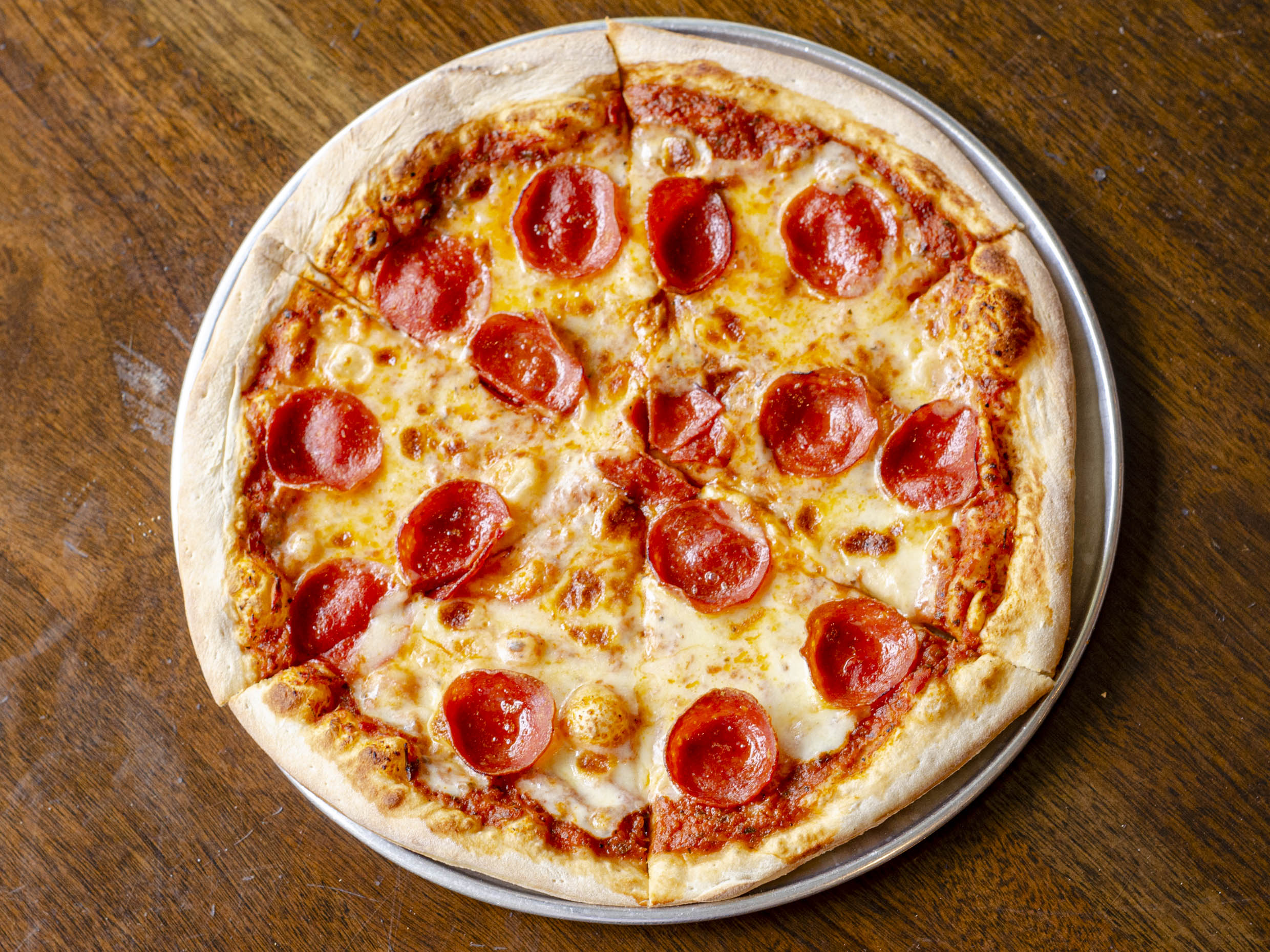 Pizza con masa delgada de 31 cm con 6 porciones de Queso Mozzarela, Pepperoni y Base Napolitana de Tomate Orgánico San Marsano.