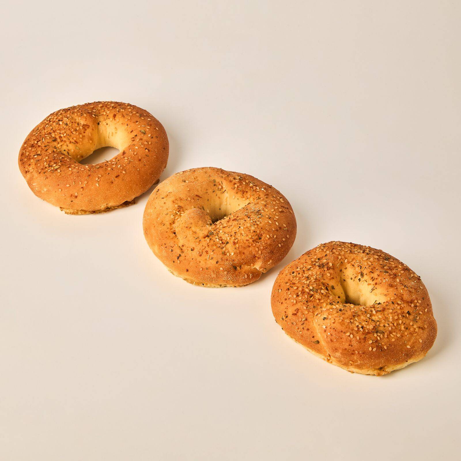 Pan tradicional americano de corteza gruesa, finalizado con queso parmesano, ajonjolí blanco y hierbas finas, enriquecido con lácteos. (3 unidades).