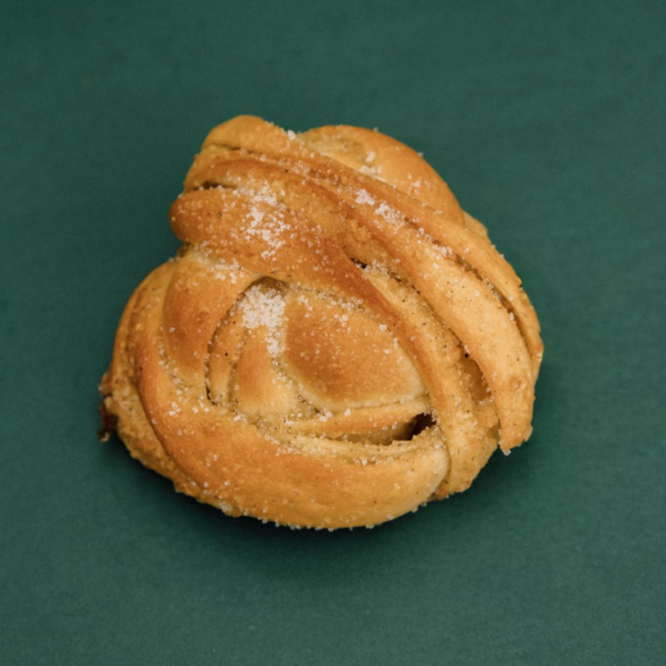 Producto elaborado a partir de mantequilla 100% natural, suave, esponjoso y relleno de sabor a canela y nuez