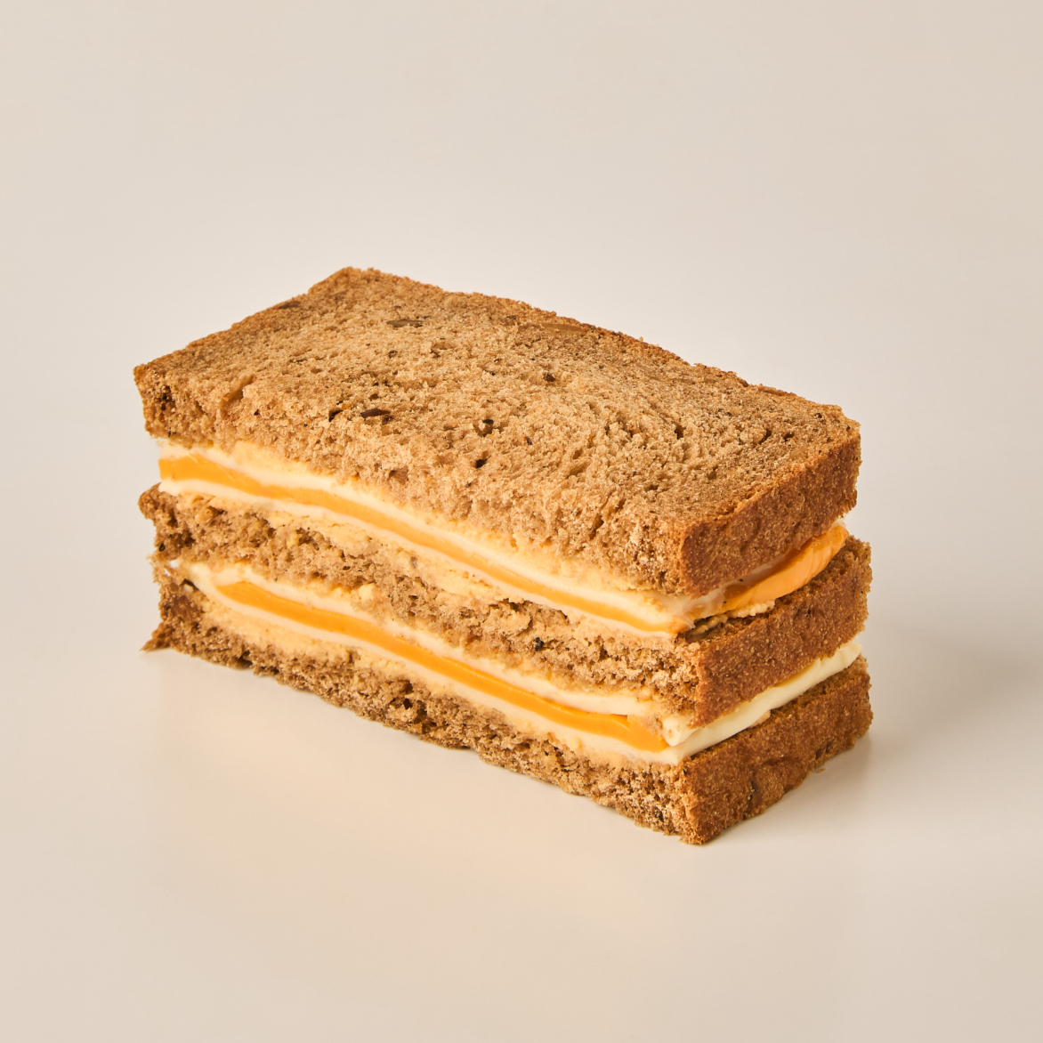 En pain de mie alternativo, con mantequilla, queso mozzarella y queso cheddar.