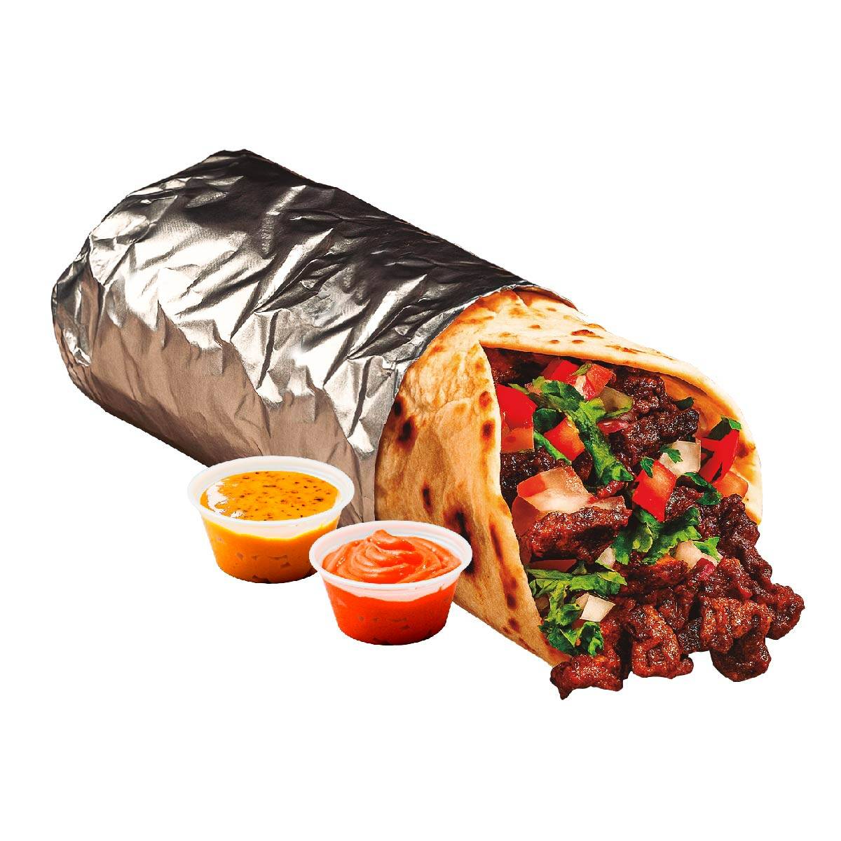 Tortilla grande, arroz, frijol, pico de gallo, sour cream, maduro, lechuga, guacamole, queso, picantes al gusto y proteína a elección.