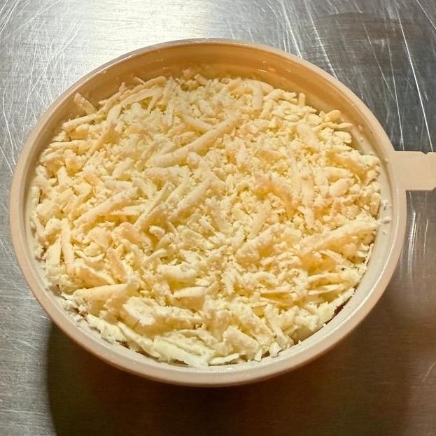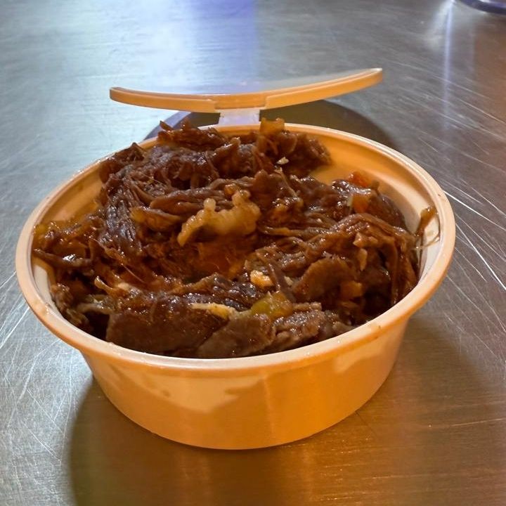 100 g De 100% carne de res desmechada en una mezcla de hogao con maicitos y tocineta.