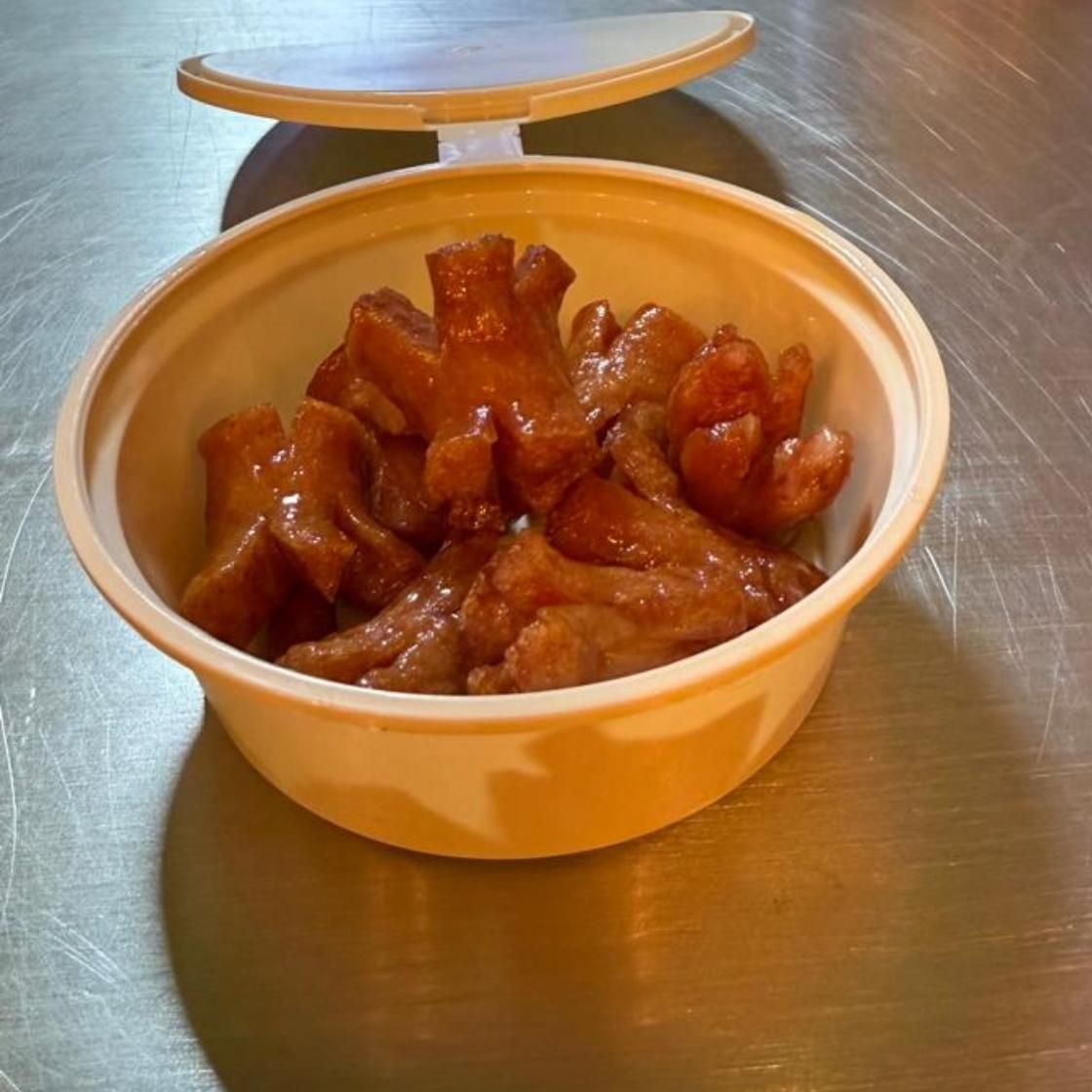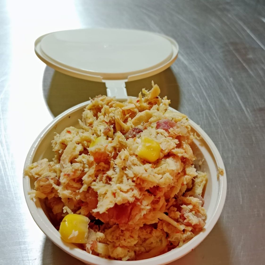 100 g De 100% pollo desmechado en una mezcla de maicitos y tocineta.
