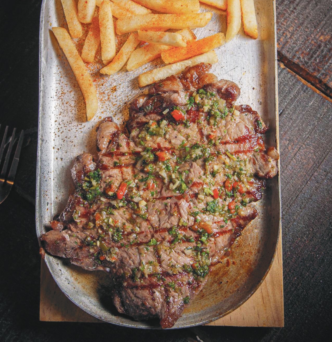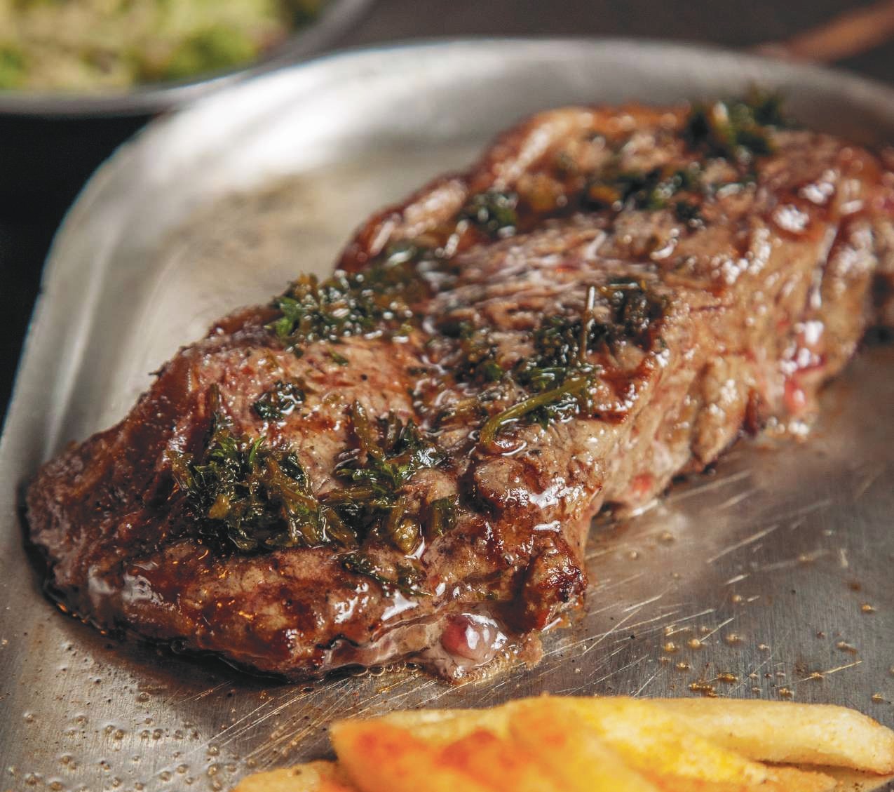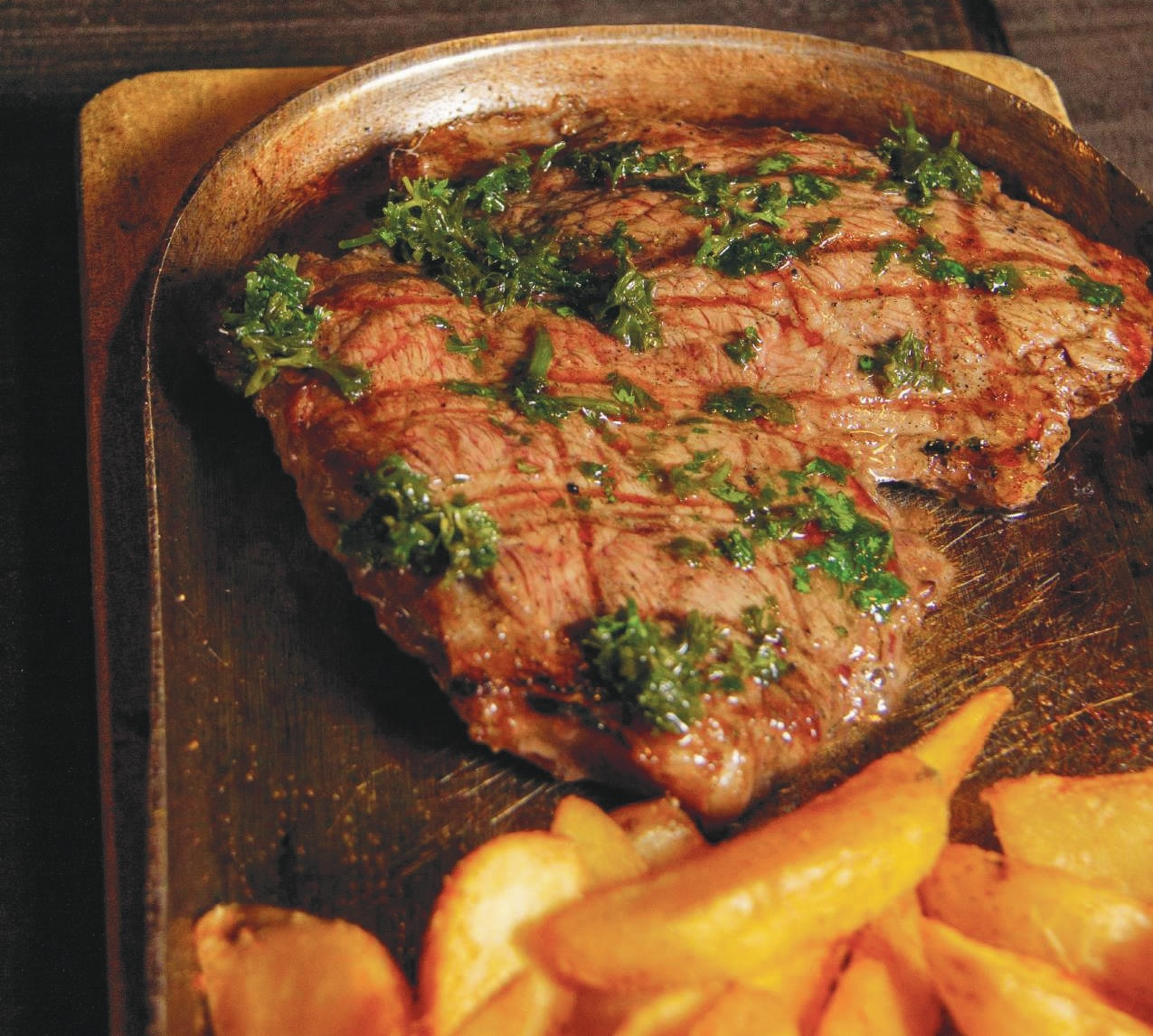 300 g Bifé ancho asado a la parrilla, bañado en chimichurri de la casa.