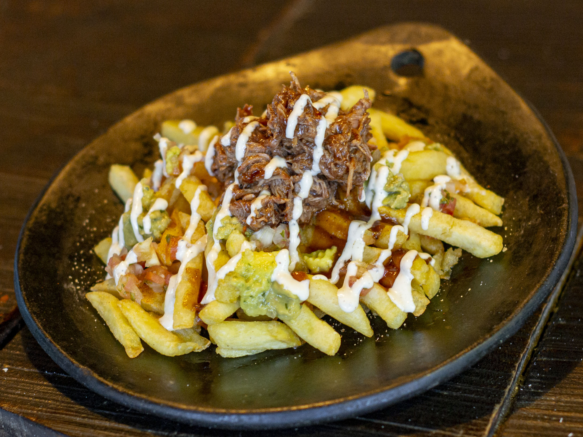 Papas crocantes acompañadas de cerdo desmechado en salsa BBQ picante, guacamole fresco, pico de gallo artesanal y un toque de sour cream. Una fusión equilibrada de sabores intensos y texturas suaves en cada bocado.