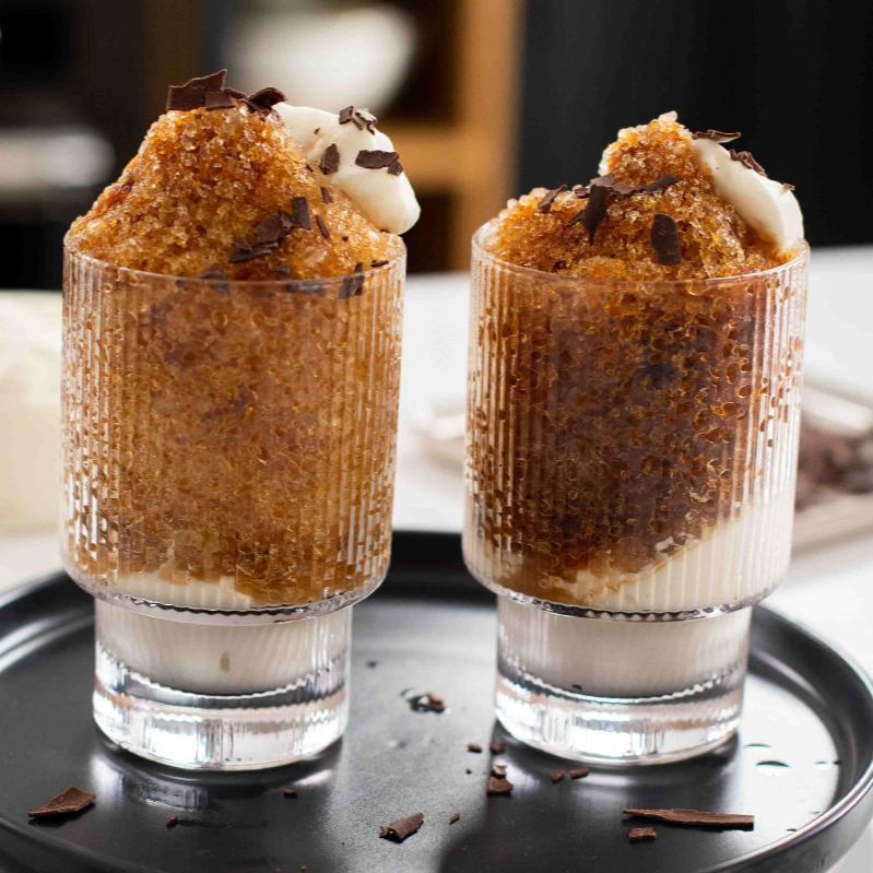 Aperitivo refrescante no vinico elaborada en maquina granizadora a base de leche con sabor a cafe, autentico y exclusivo con una textura suave, cremosa y ligera en volumen de alcohol de 0°.