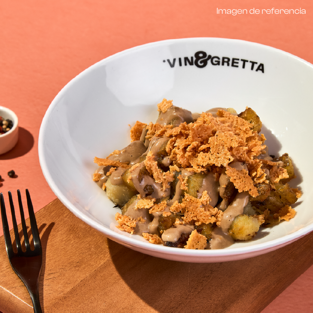 Papas rostizadas con salsa de trufa coronado con parmesano crocante