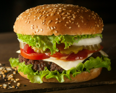 Pan artesanal, 200 gramos de carne 100% res, queso cheddar, lechuga fresca, tomate fresco, papas francesas, salsas de la casa.