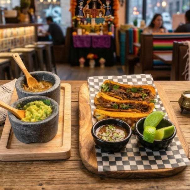 Carne de res en cocción lenta de 7 horas, cebolla, cilantro y caldo de birria.
