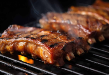 Jugosas costillas marinadas en salsa BBQ casera y asadas lentamente.