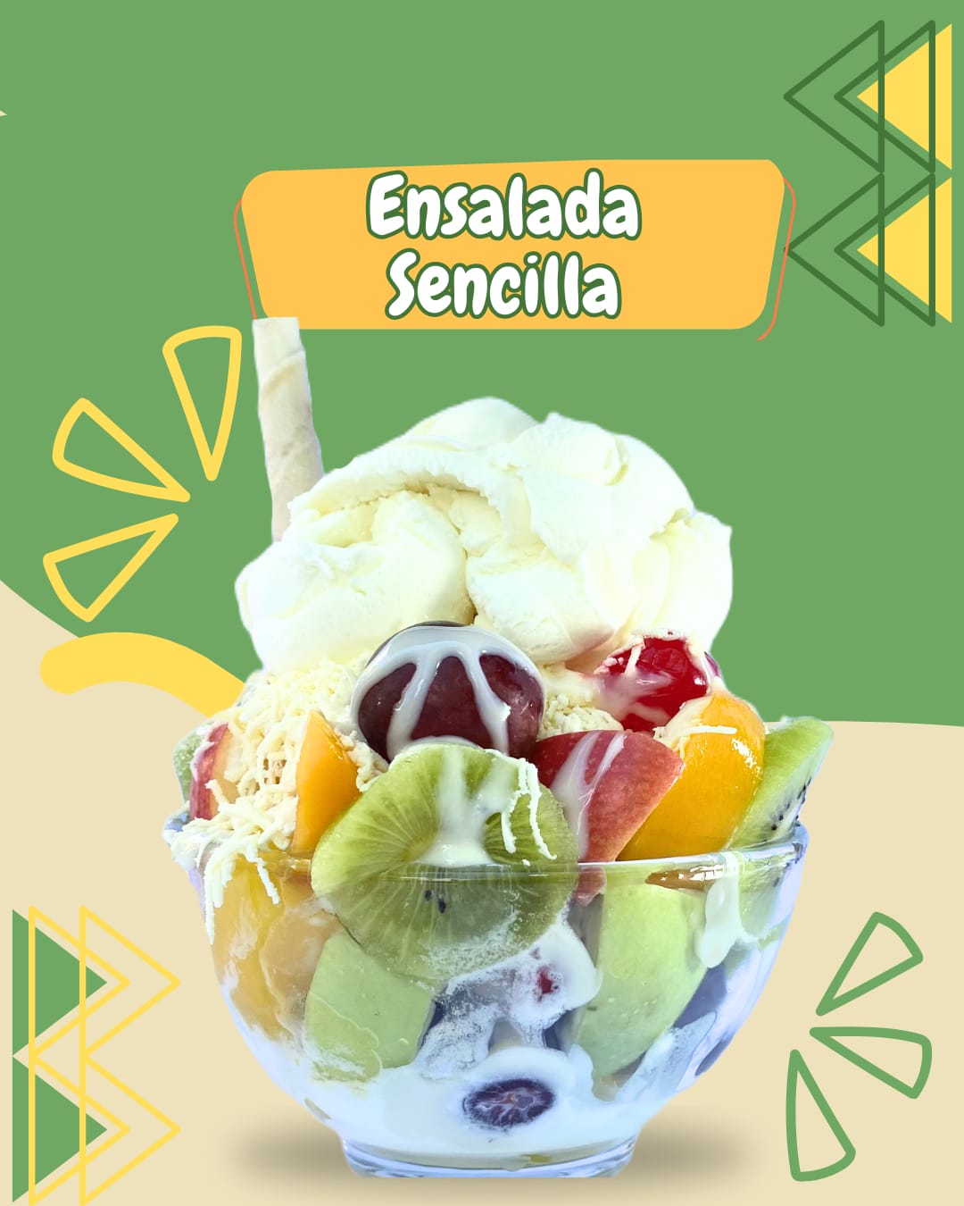 Medio litro de variedad de fruta, queso, 2 porciones de helado, crema de leche, lecherita, 2 barquillos.