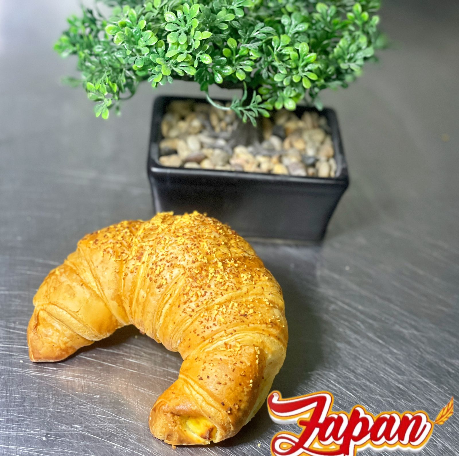 Delicioso y crujiente croissant con relleno de jamón y queso.