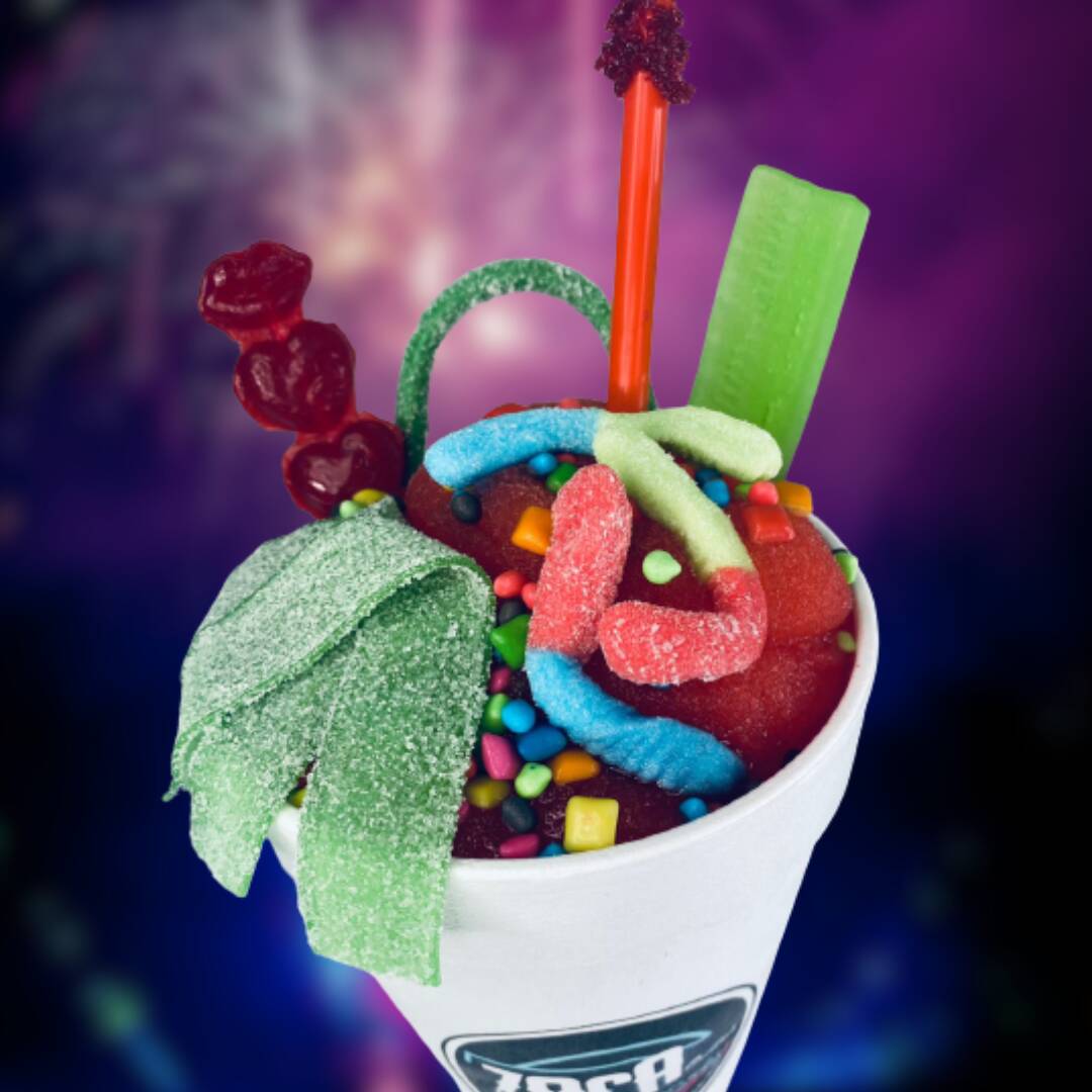 Granizado Con Licor, incluye Dulces: Okaloka, chicles, bonbom, 2 gusanitos,cable acido, tocineta.