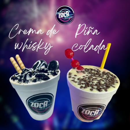Crema de whiskey. Incluye:galleta oreo, lecherita. Piña colada: lecherita y cereza.