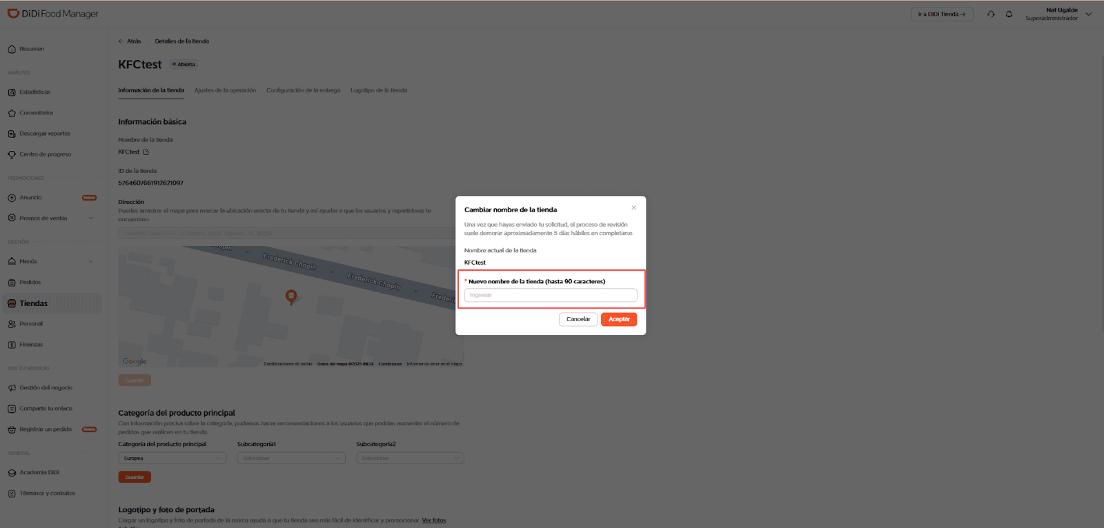 Sigue estos pasos para actualizar el nombre de tu tienda en la plataforma DiDi Food.