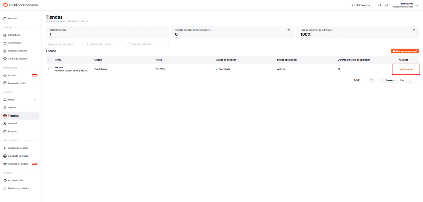 6. Haz clic en Continuar Serás redirigido automáticamente a DiDi Food Manager, donde se abrirá una ventana emergente para que puedas cambiar el nombre de tu tienda.