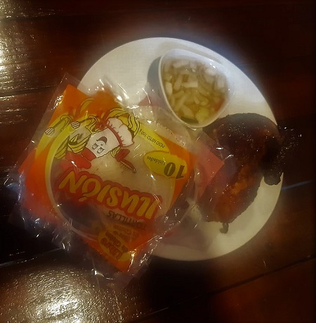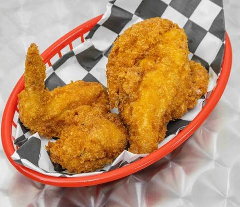 Un cuarto de pollo asado, tortillas, una orden de papas fritas o patacones y un refresco natural de té frío.