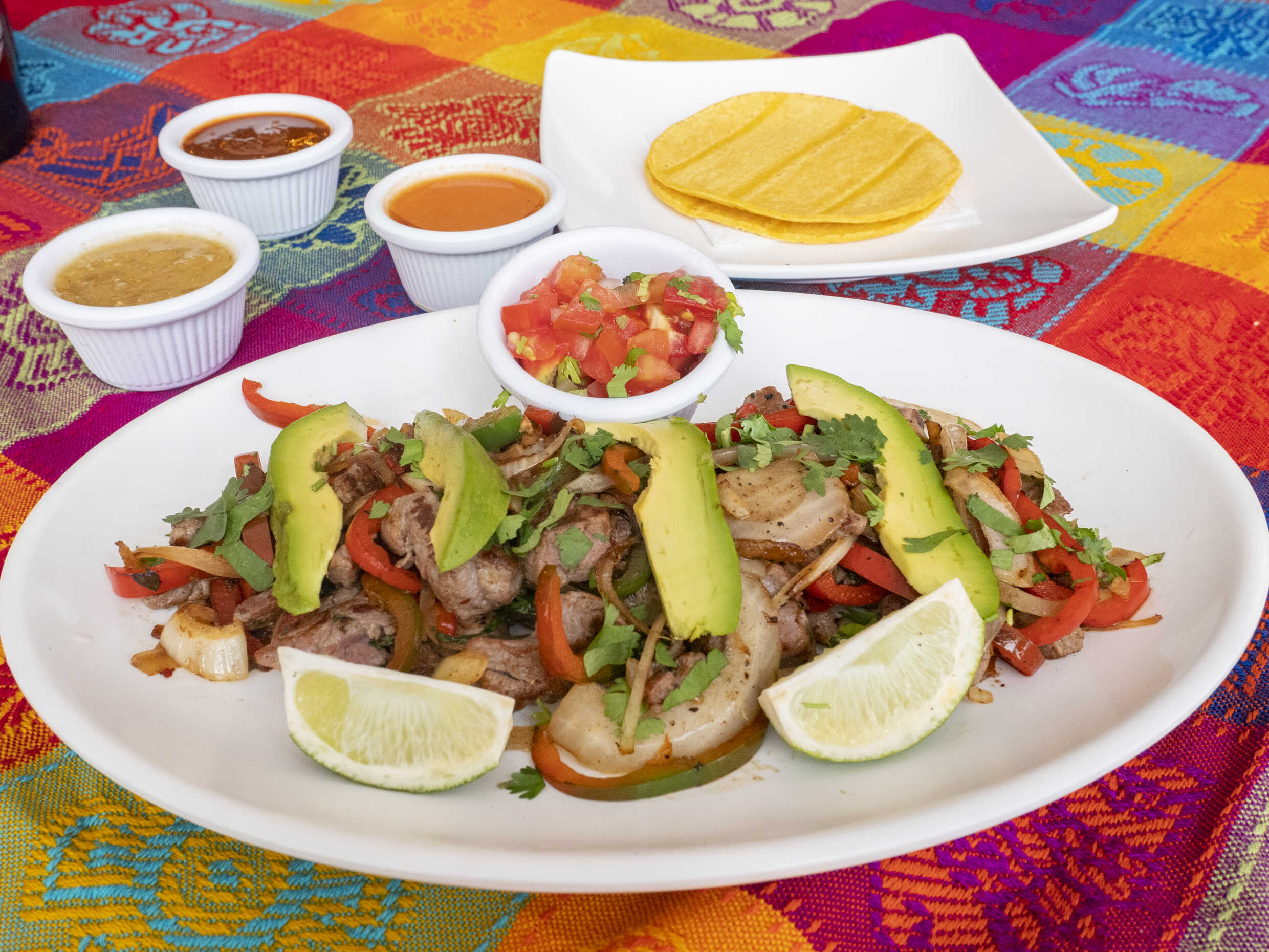 La combinación perfecta de chile dulce, tocineta, cebolla, con la carne de tu elección, acompañado de cuatro tortillas.