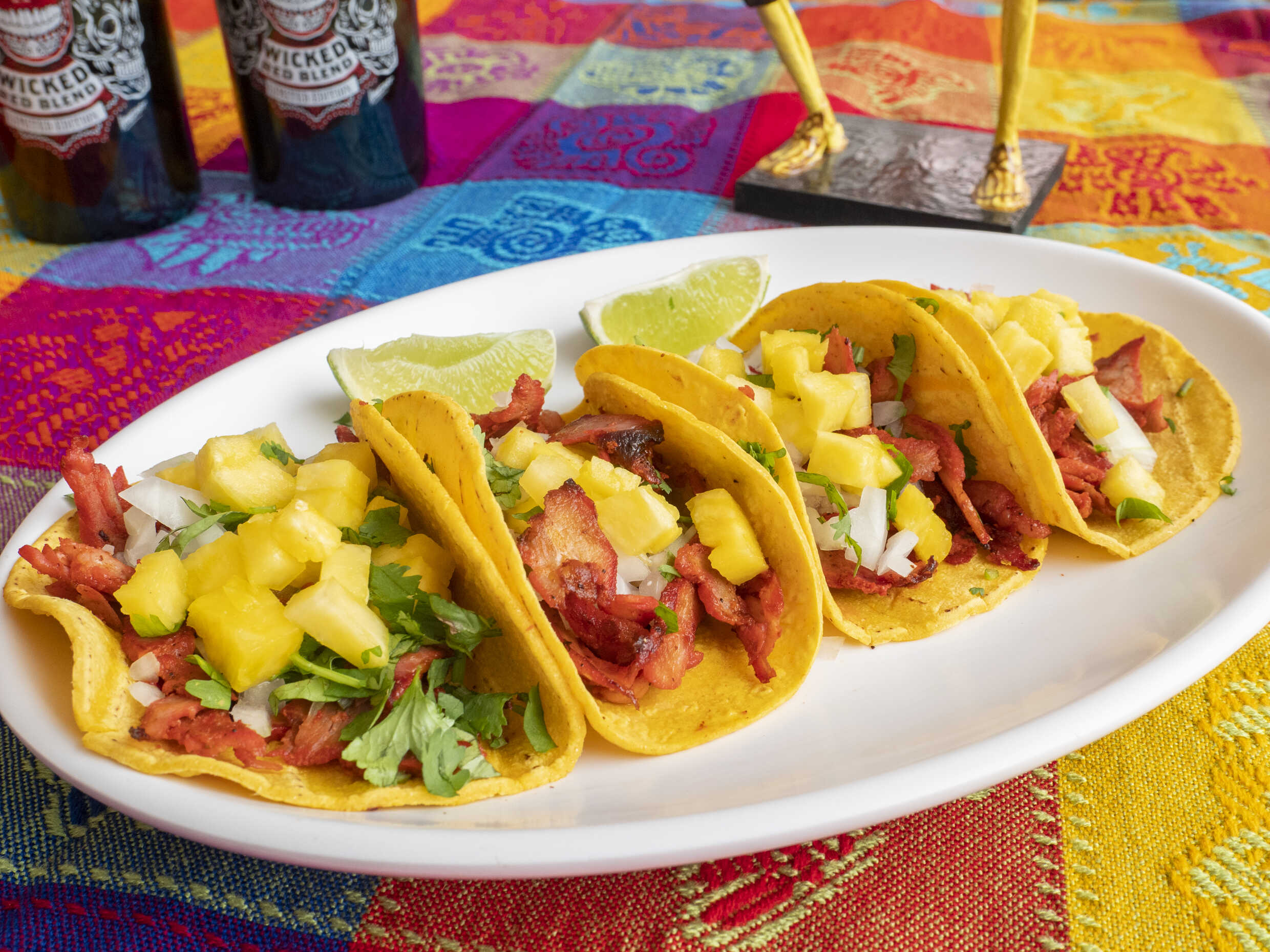 Pa’ taquear. Cuatro exquisitas tortillas de maíz rellenas de Pastor, cebolla, culantro, piña.