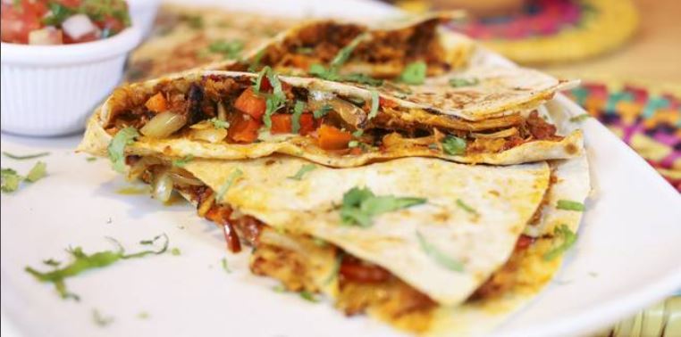 No necesitas visa para comerte una gringa. Dos tortillas de harina rellenas de carne la carne de tu elección y queso mozzarella.