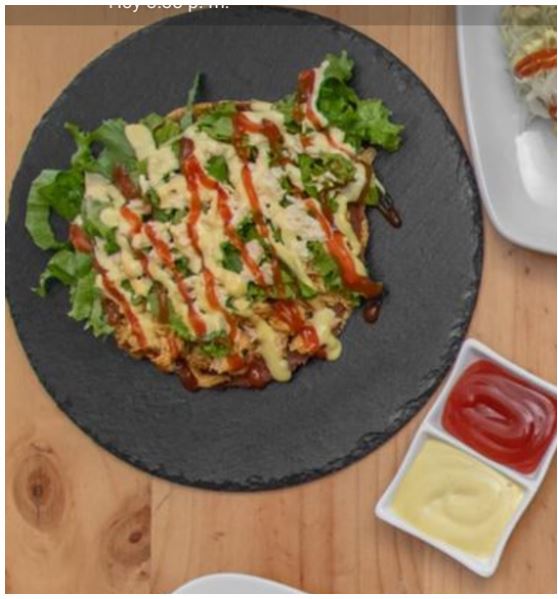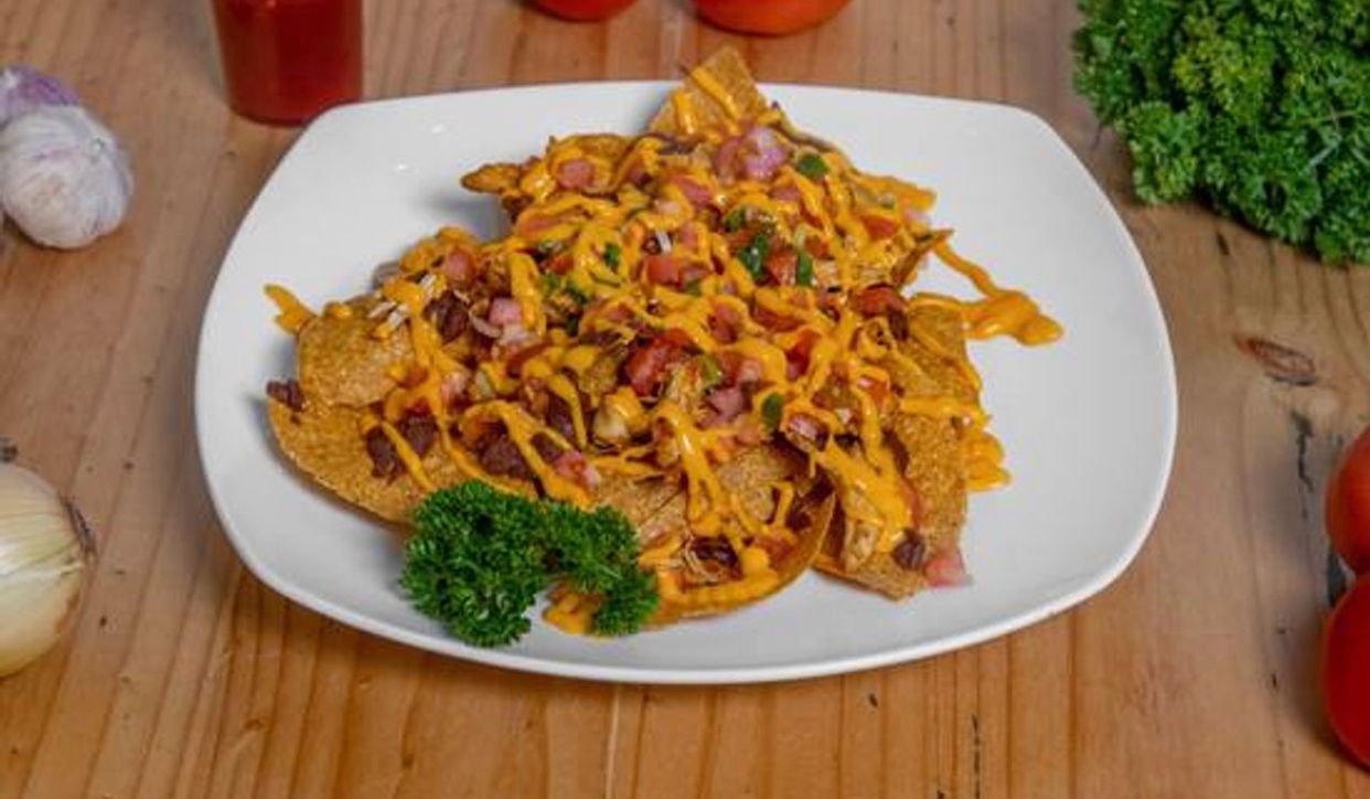 Deliciosas papas a la francesa con salsa de tomate, mayonesa casera, queso cheddar ,carne mechada, pico de gallo y picadura de tocino.