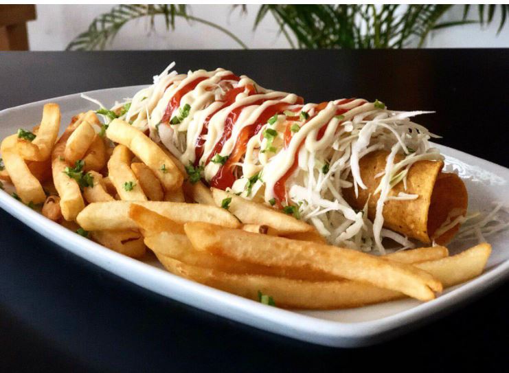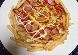 Deliciosas papas a la francesa con salchichas,salsa de tomate y deliciosa mayonesa casera.