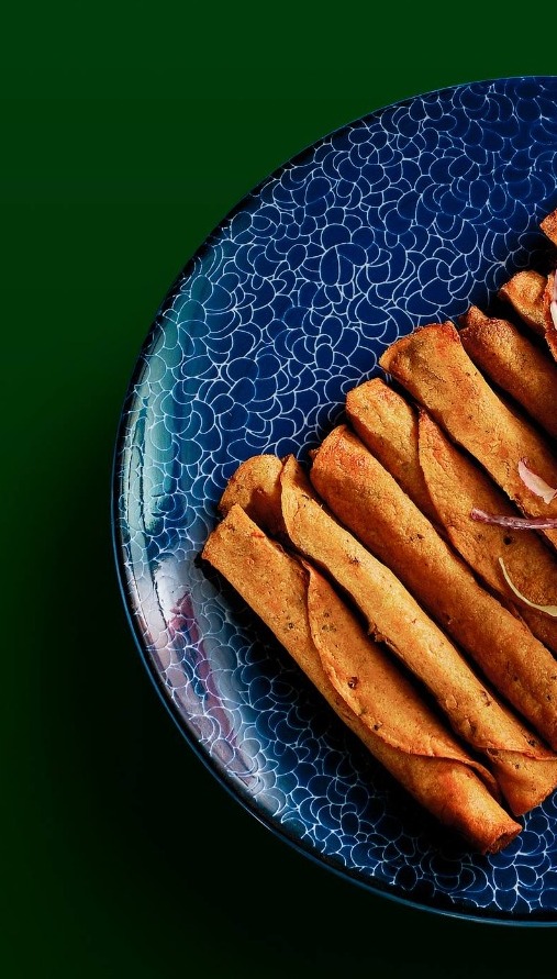 Arroz blanco,frijoles tiernos,chicharrón, pico de gallo,aguacate doraditas acompañándolo.