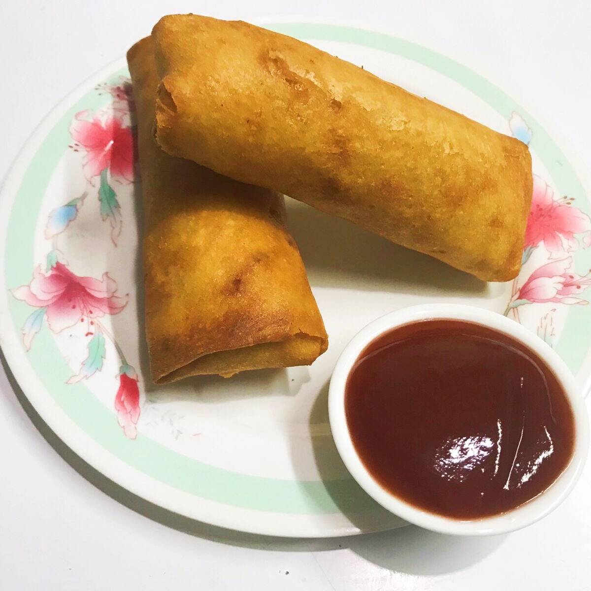Tacos chinos fritos con salsa agridulce.