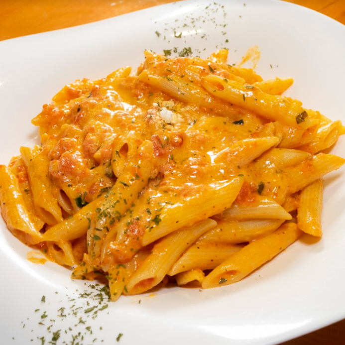 Camarones salteados con tocineta y maíz dulce en salsa de queso mozzarella, cheddar y parmesano.