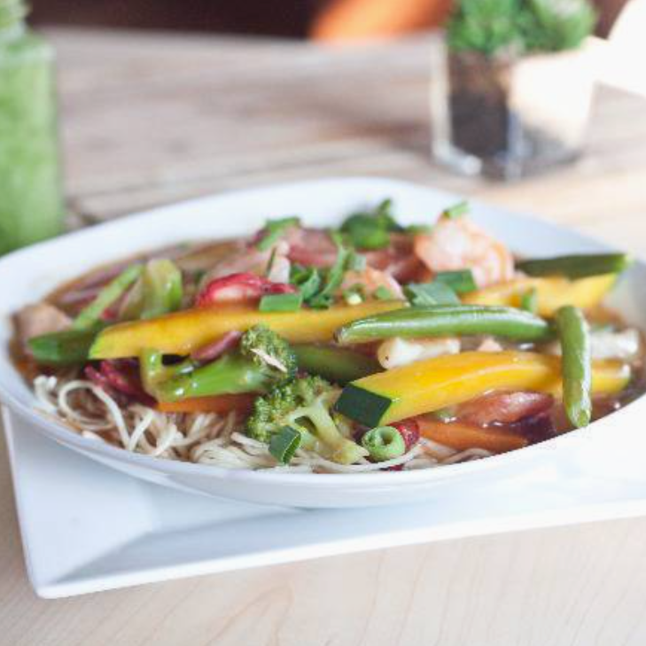 Chop Suey en salsa con camarones
