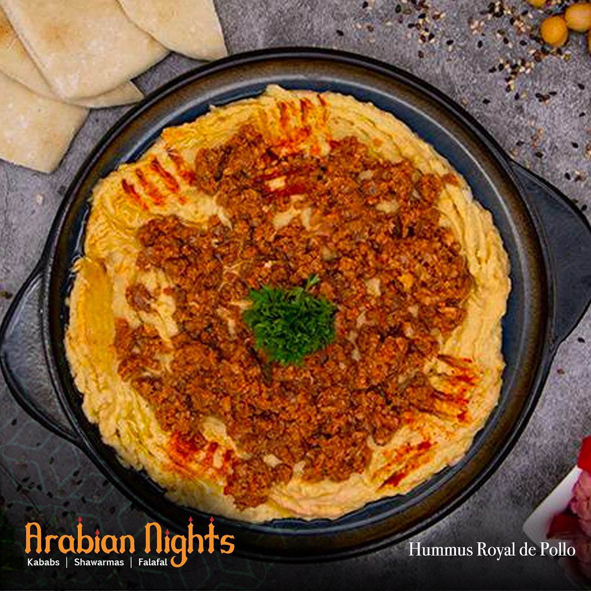 Hummus Royal de Pollo más Pan Pita Casera
