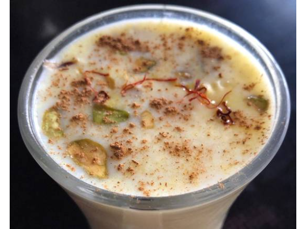 Suave, sedosa y reconfortante bebida de leche dulce del medio oriente, con canela, azafrán y nueces.