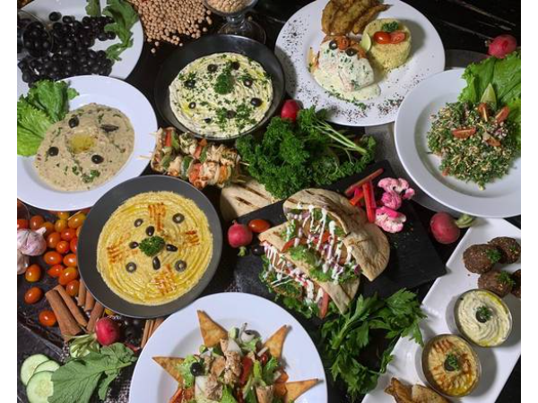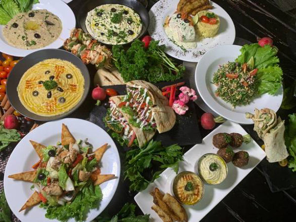 Incluye: bebida tamer hinda, postre baklawa. falafal clásico (bolitas de mezcla triturada de garbanzos hidratados en agua con cebolla, ajo, perejil y diferentes hierbas y especias), dip de tahini con hummus, tamer hindi (jugo de tamarindo y menta con agua de rosa) más postre baklawa.