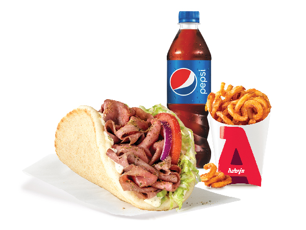 Solo para carnívoros; media libra del famoso Roast Beef de Arby's, cortado finamente y servido calientito en pan de cebolla, acompañado de salsa de queso Cheddar y aderezo Red Ranch.