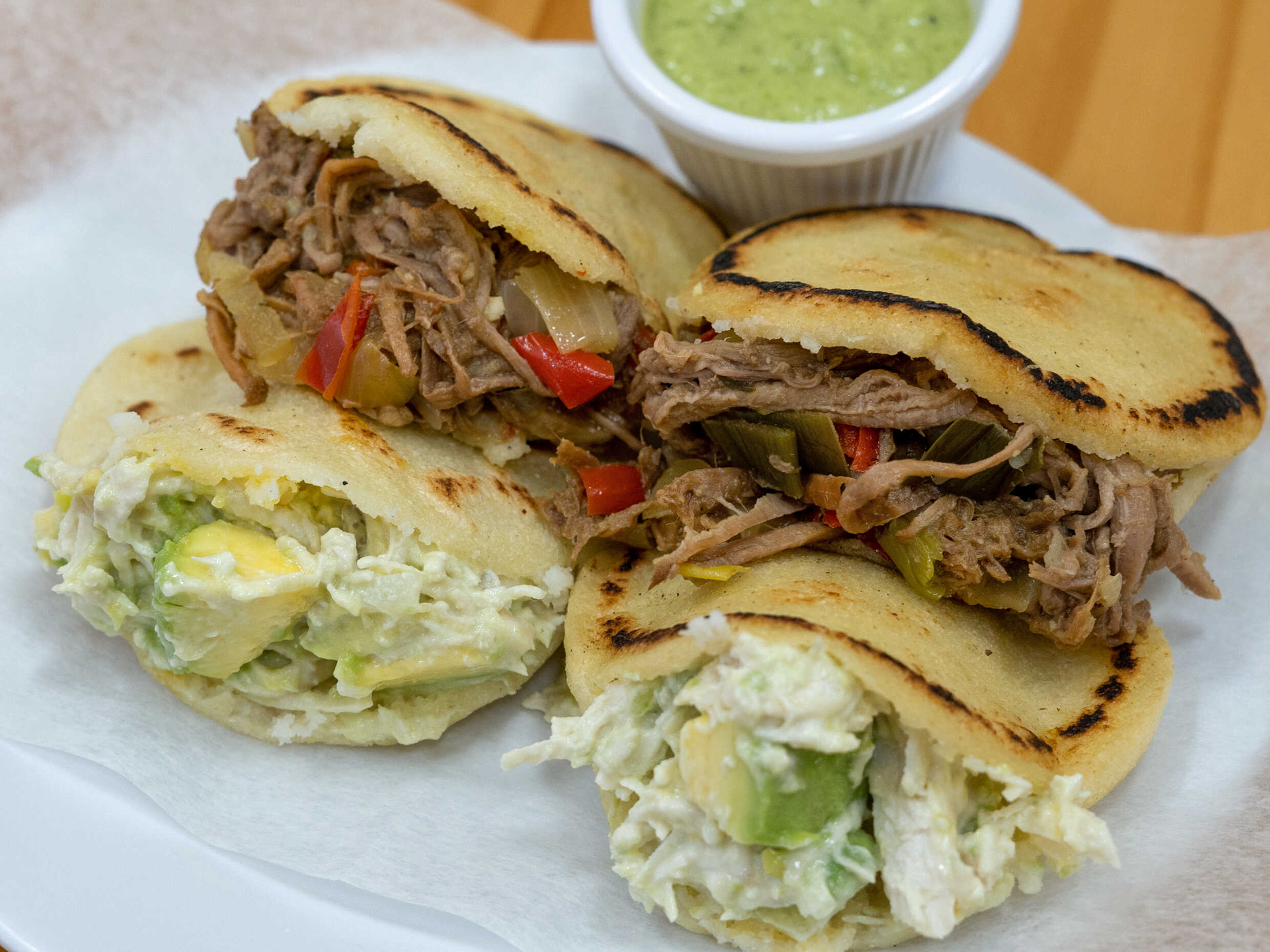 Arepas a elegir son 2 sabores de la 1 a la 20 de menú.