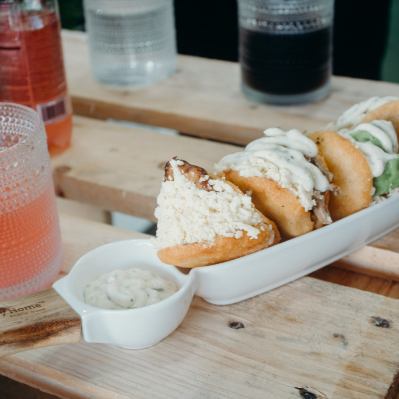 4 Sabores de arepas venezolanas con salsa especial de la casa.
