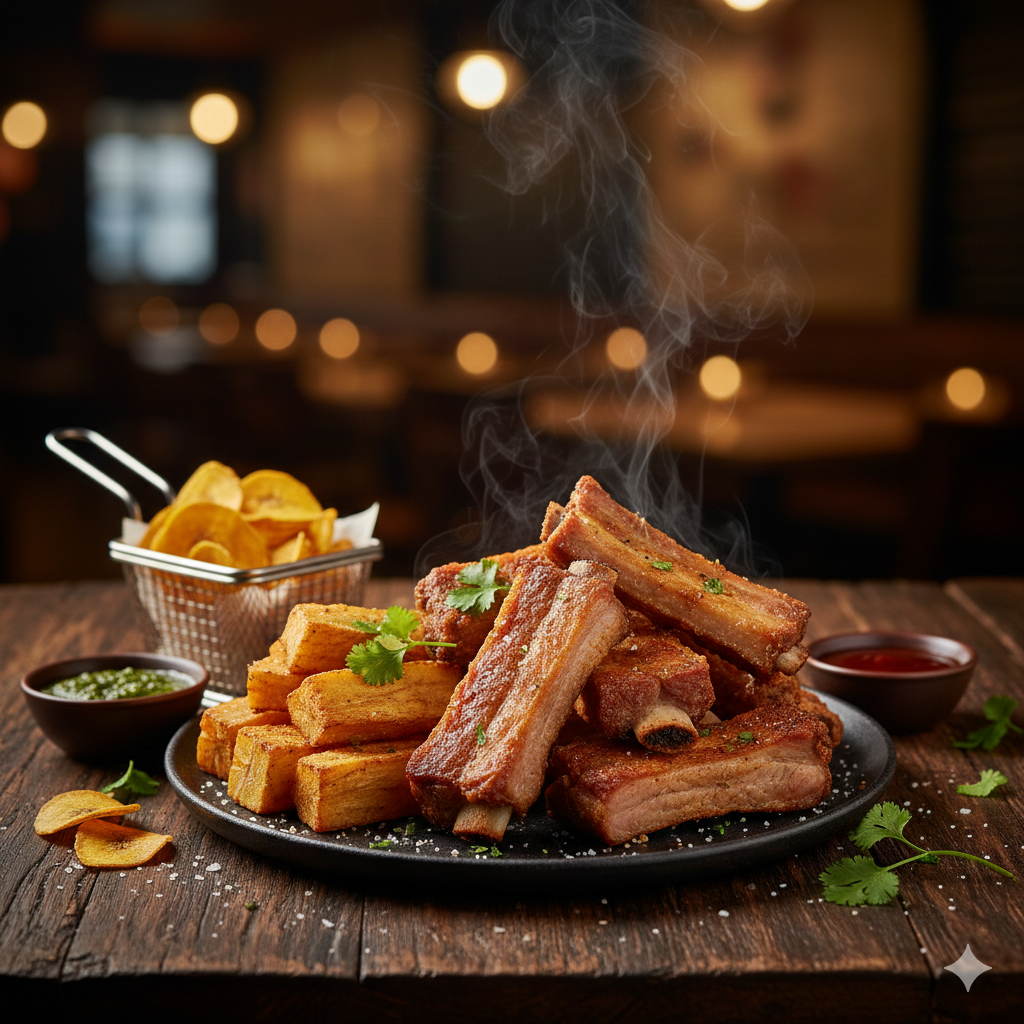 Bananitos, salsas a elección (búfalo, mostaza miel y BBQ).