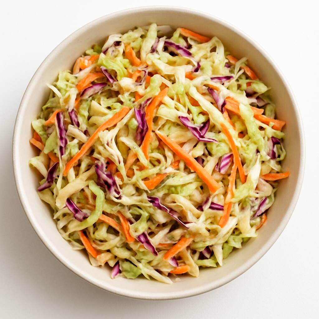 Repollo fresco rallado, zanahoria rallada, limón, azúcar y mayonesa.