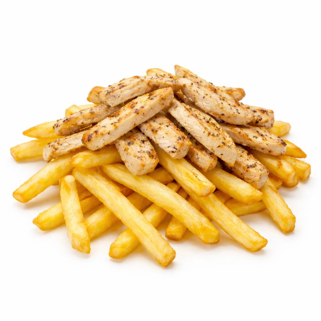 300grs/Papas fritas con fajitas de pollo, preferido por los más pequeños 😎