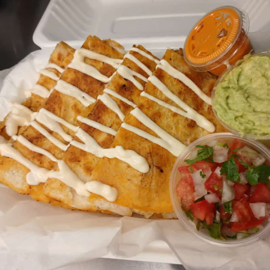3 Tipos de queso, pico de gallo, guacamole y natilla.