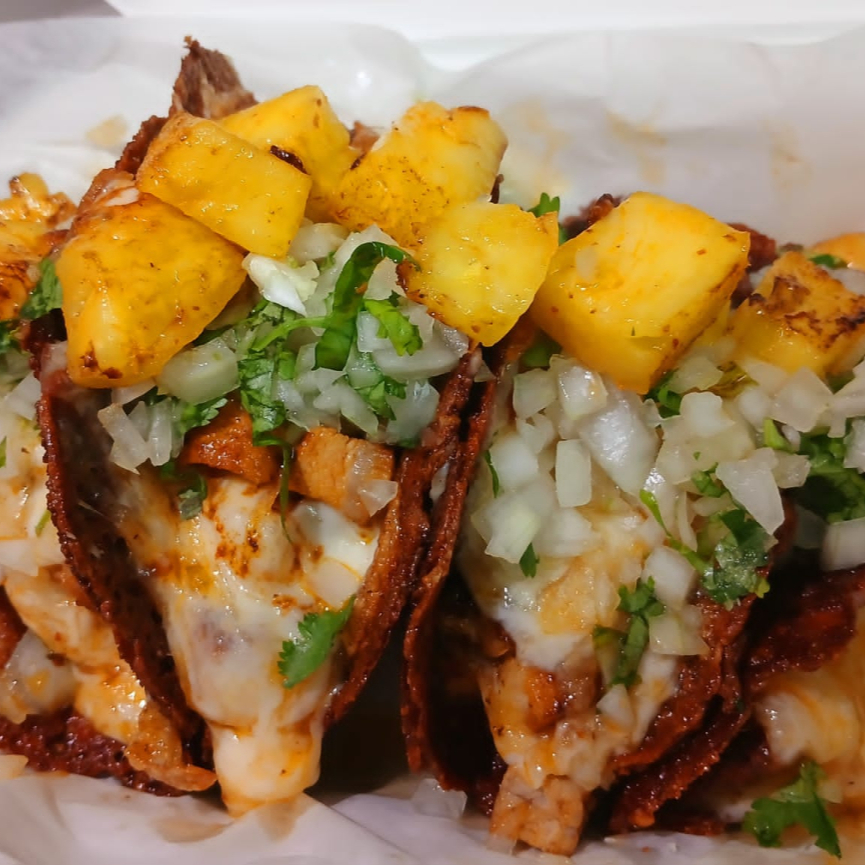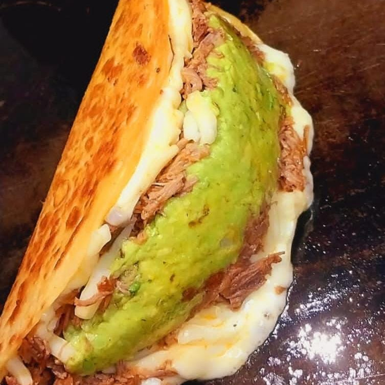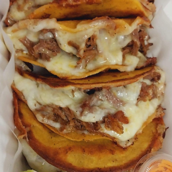Tortillas de queso con carne a elegir: birria, pastor o cochinita pibil.