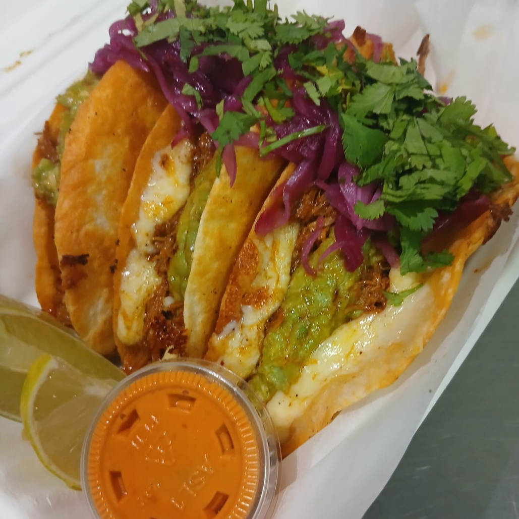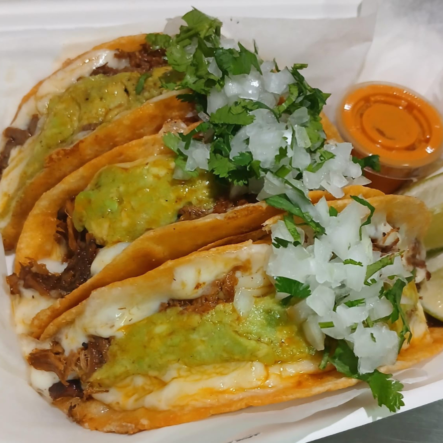 4 Unidades acompañados de cebolla, culantro, limon y salsa picante de la casa.