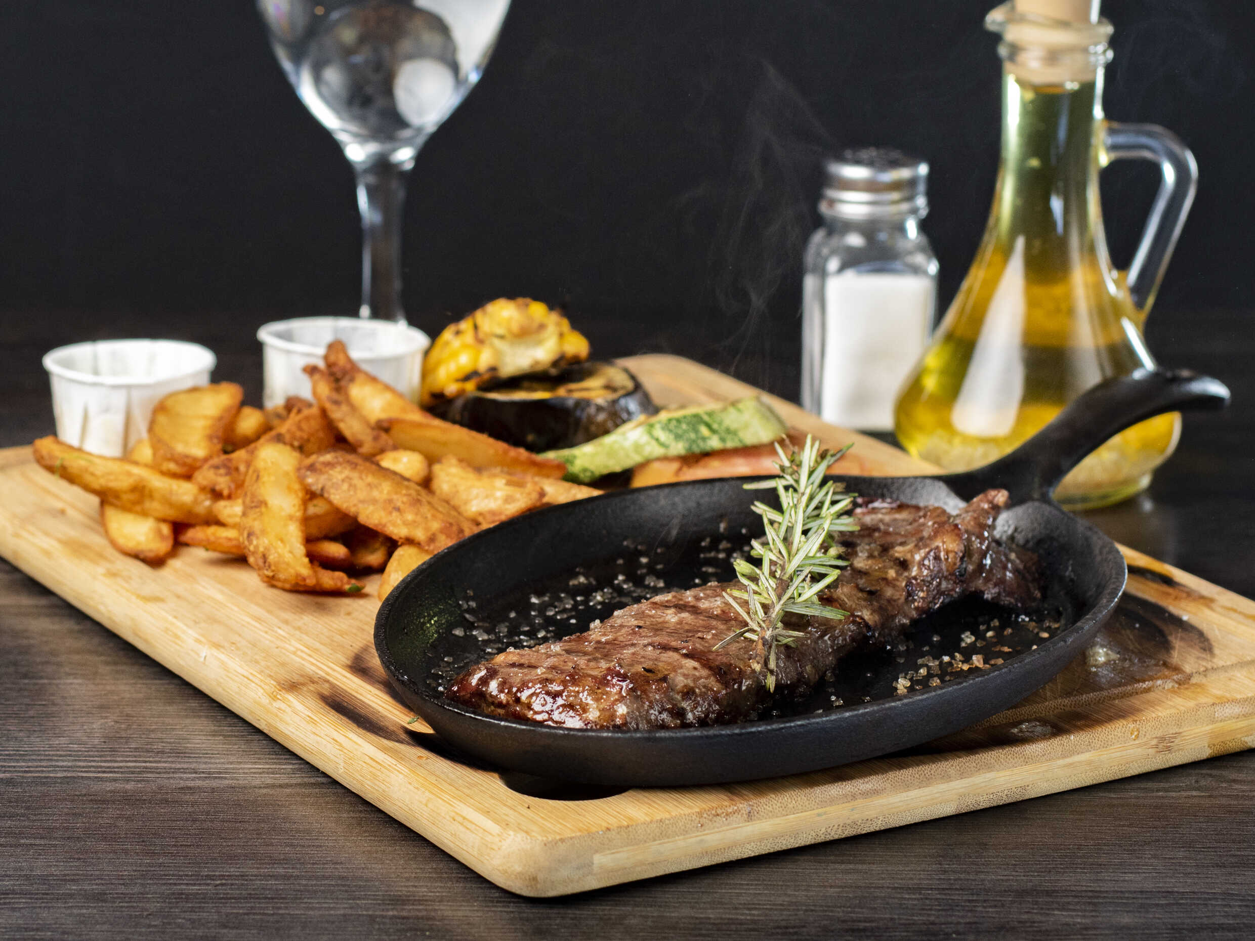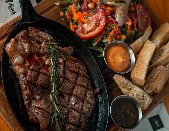 Delicioso churrasco 320 g a la parrilla en tu término preferido que incluye también dos acompañamientos a elegir.