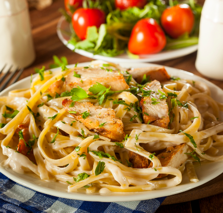 Pasta Alfredo con Pollo a la Parrilla