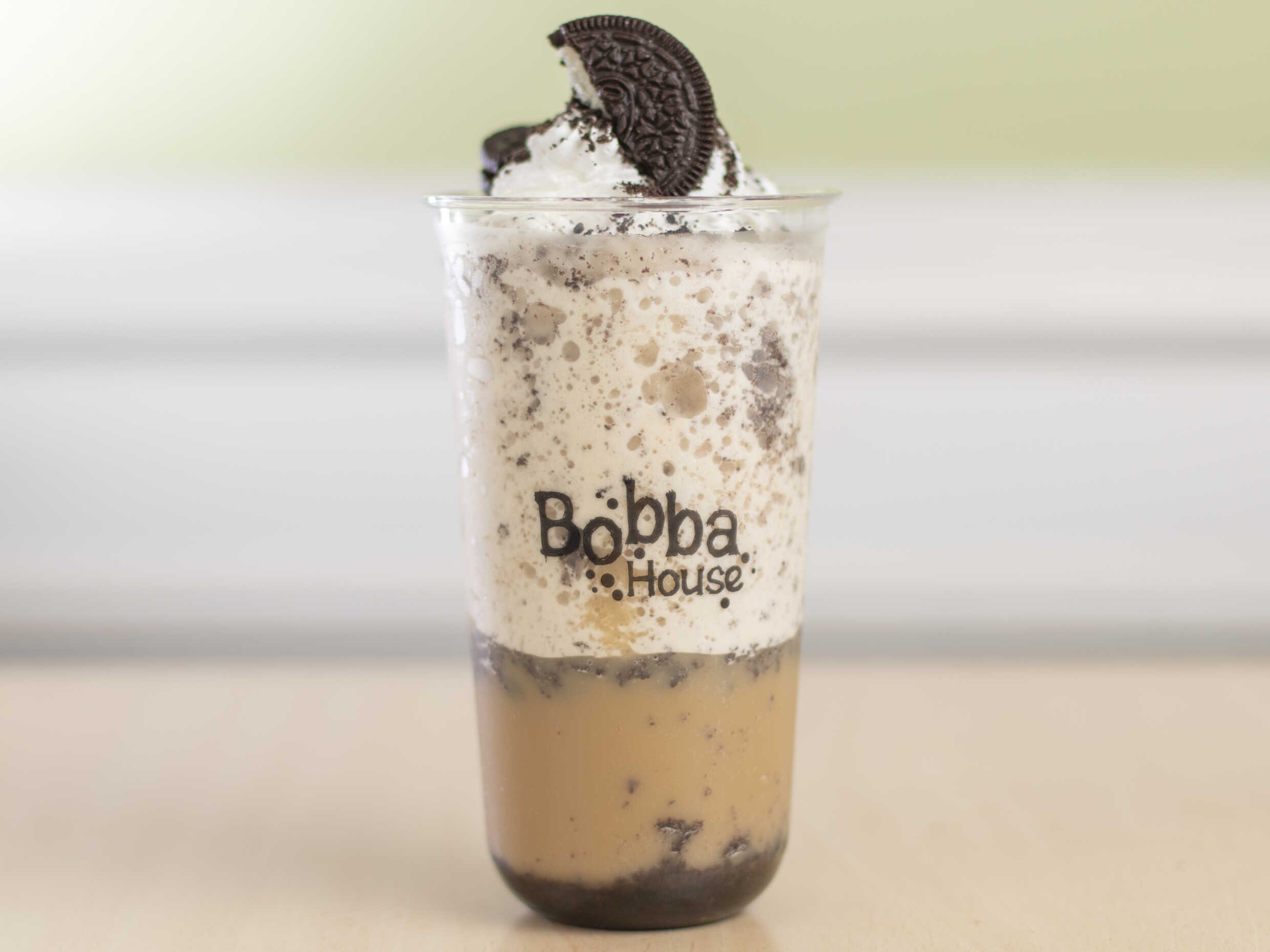 Milk tea de matcha con galleta oreo y tapioca