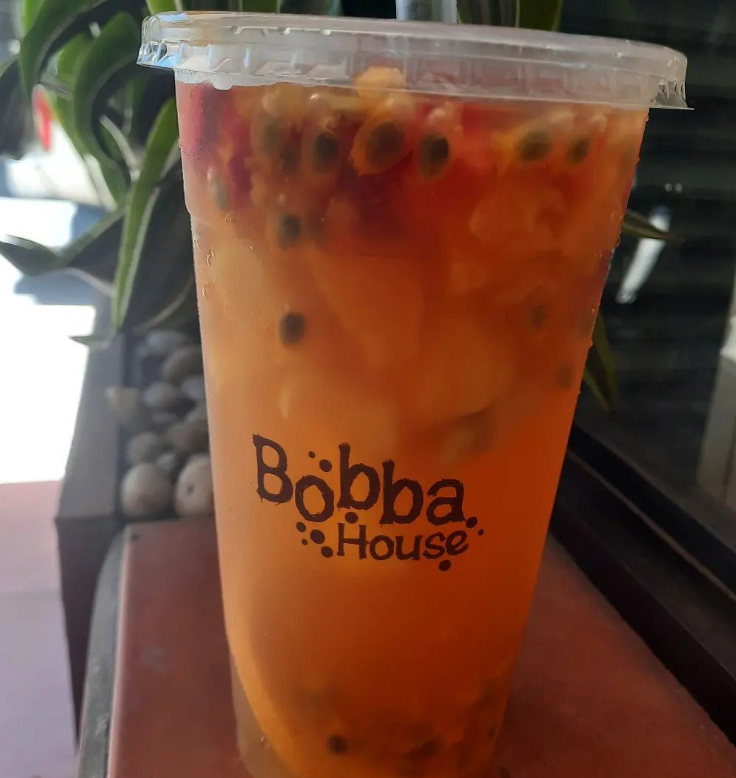Soda con sabor maracuyá con popping boba