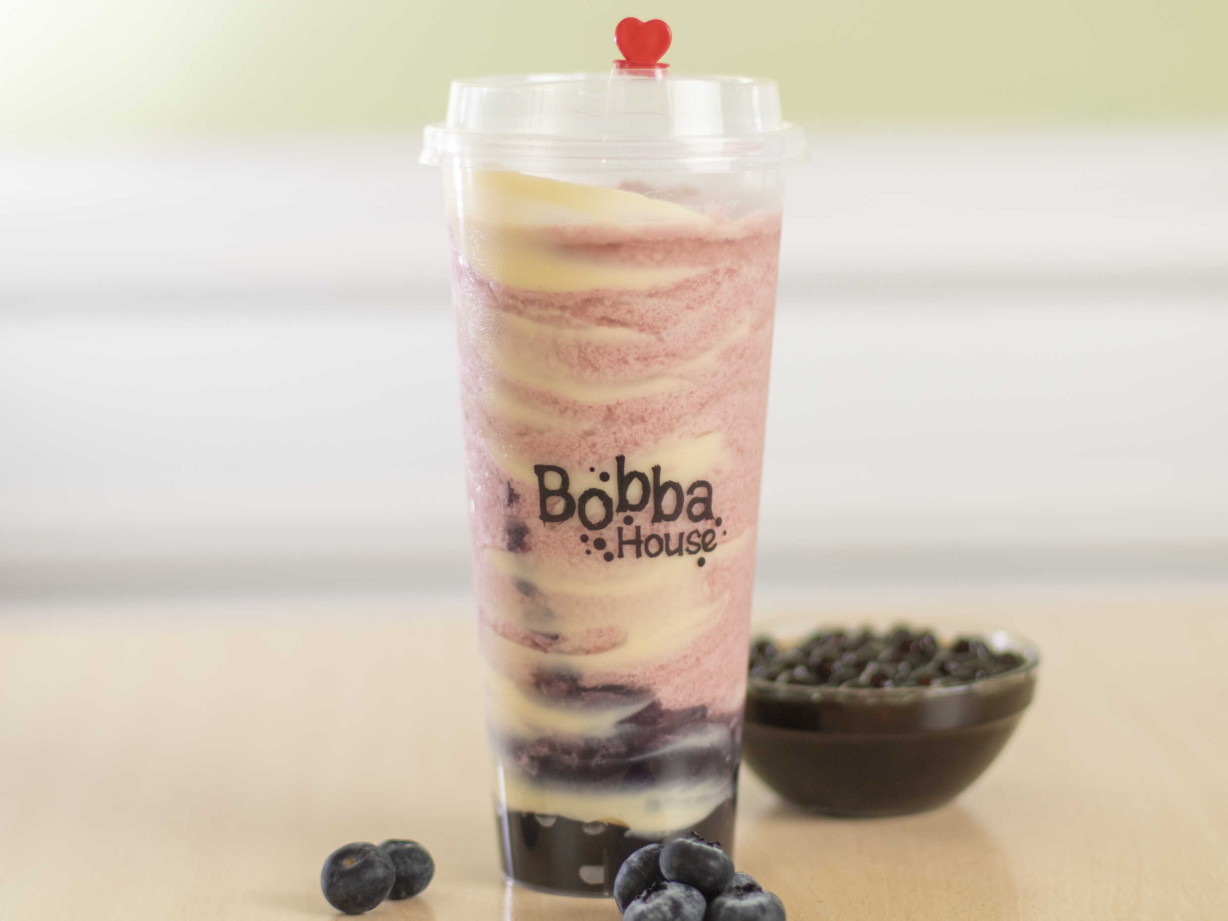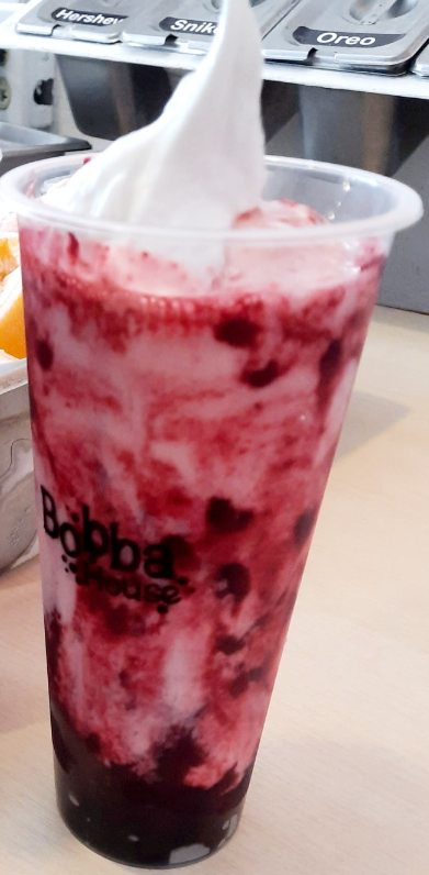Soda sabor a arándanos con popping bobas